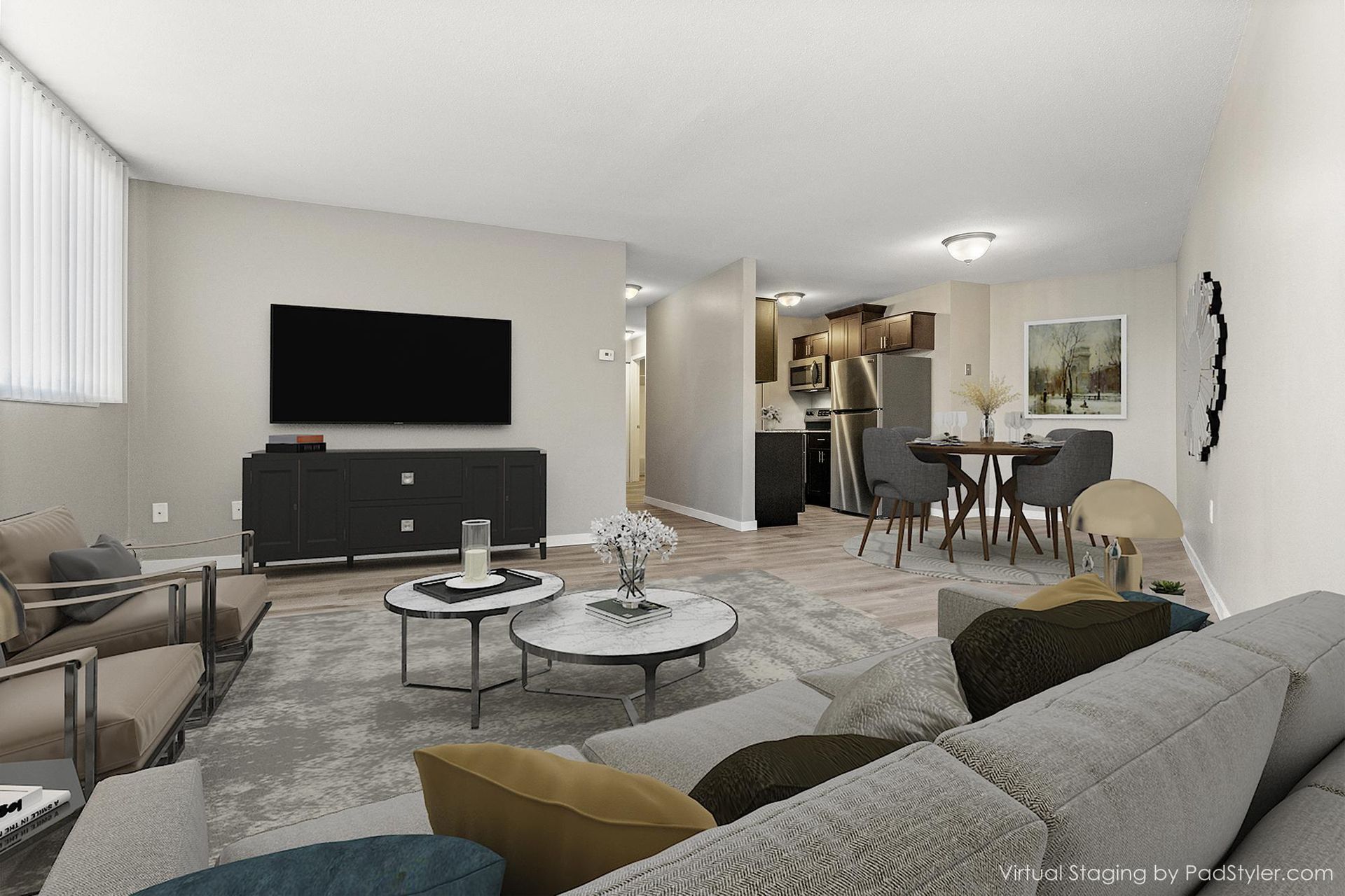 Inside each apartment, you'll find carefully selected finishes that make everyday living comfortable. From plush carpeting to warm hardwood-style flooring, every detail helps create an inviting place to call home. Air conditioning throughout the apartments ensures year-round comfort.